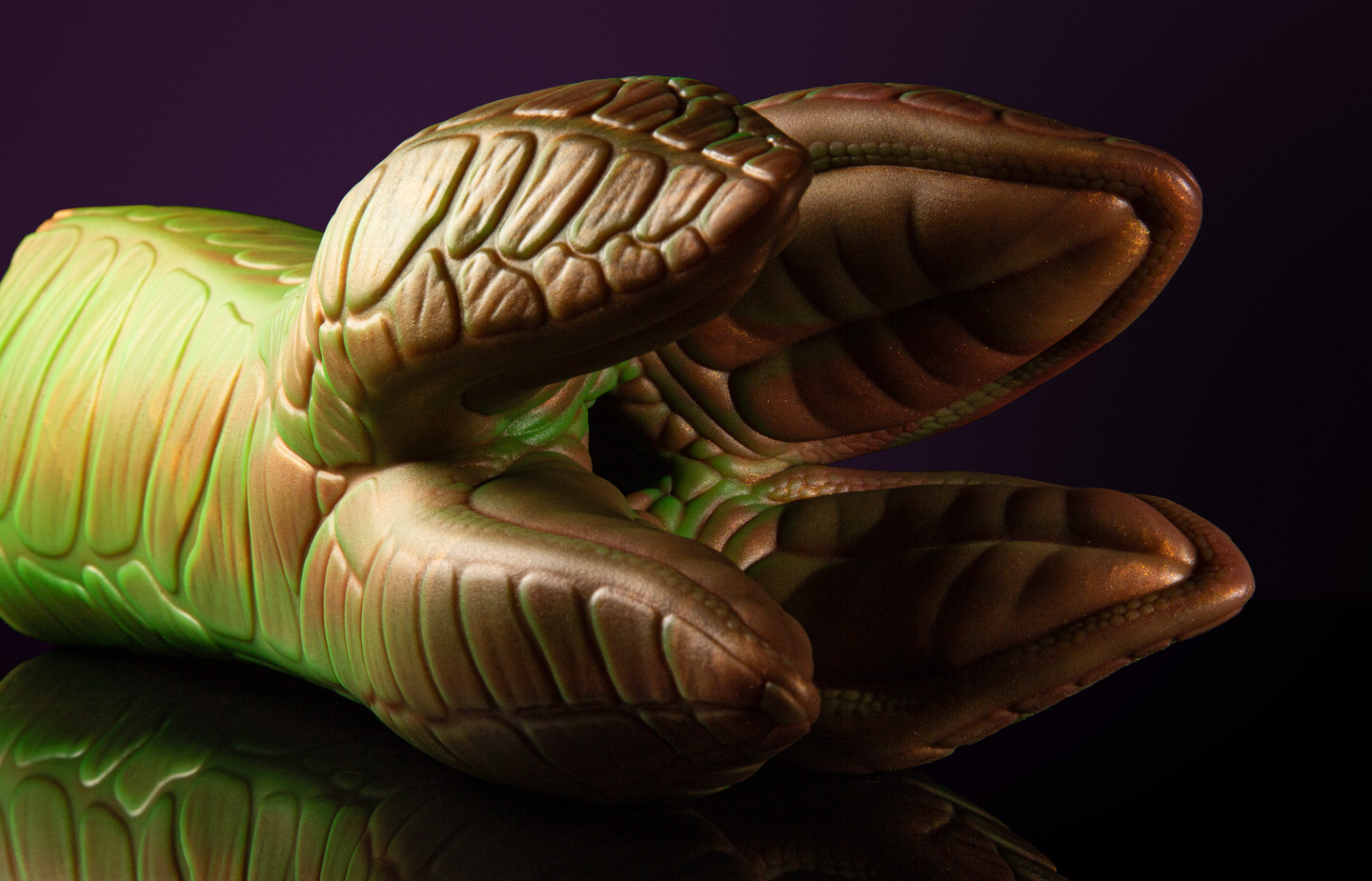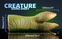 Lifting the bottom of your tee, you can see a patch of green-bronze texture emanating out from your crotch. Pressing lower, it’s spread into your thighs as well… It’s subtle, but it’s there. Creature’s flesh having crept over yours.
