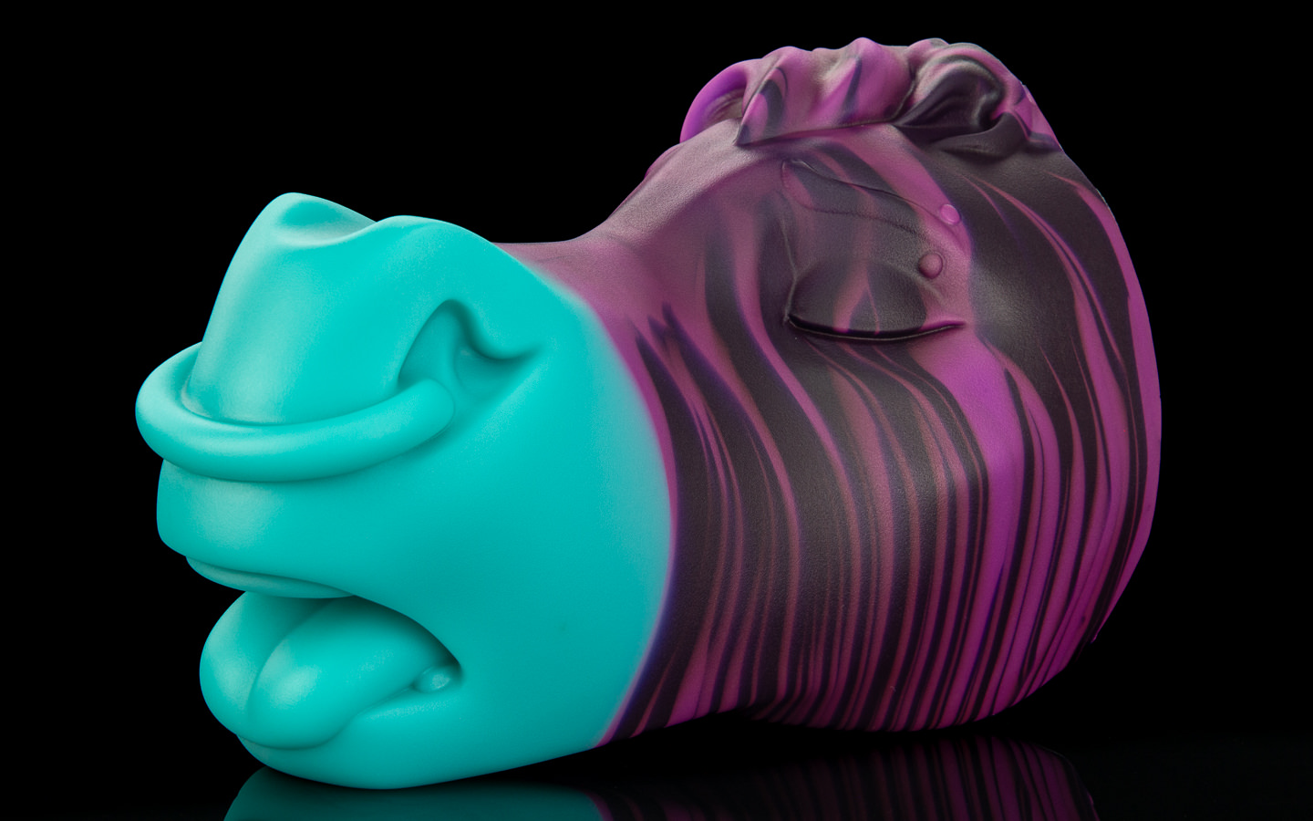 His inviting, open mouth leads into a textured, muscled throat which curves slightly as you push through.