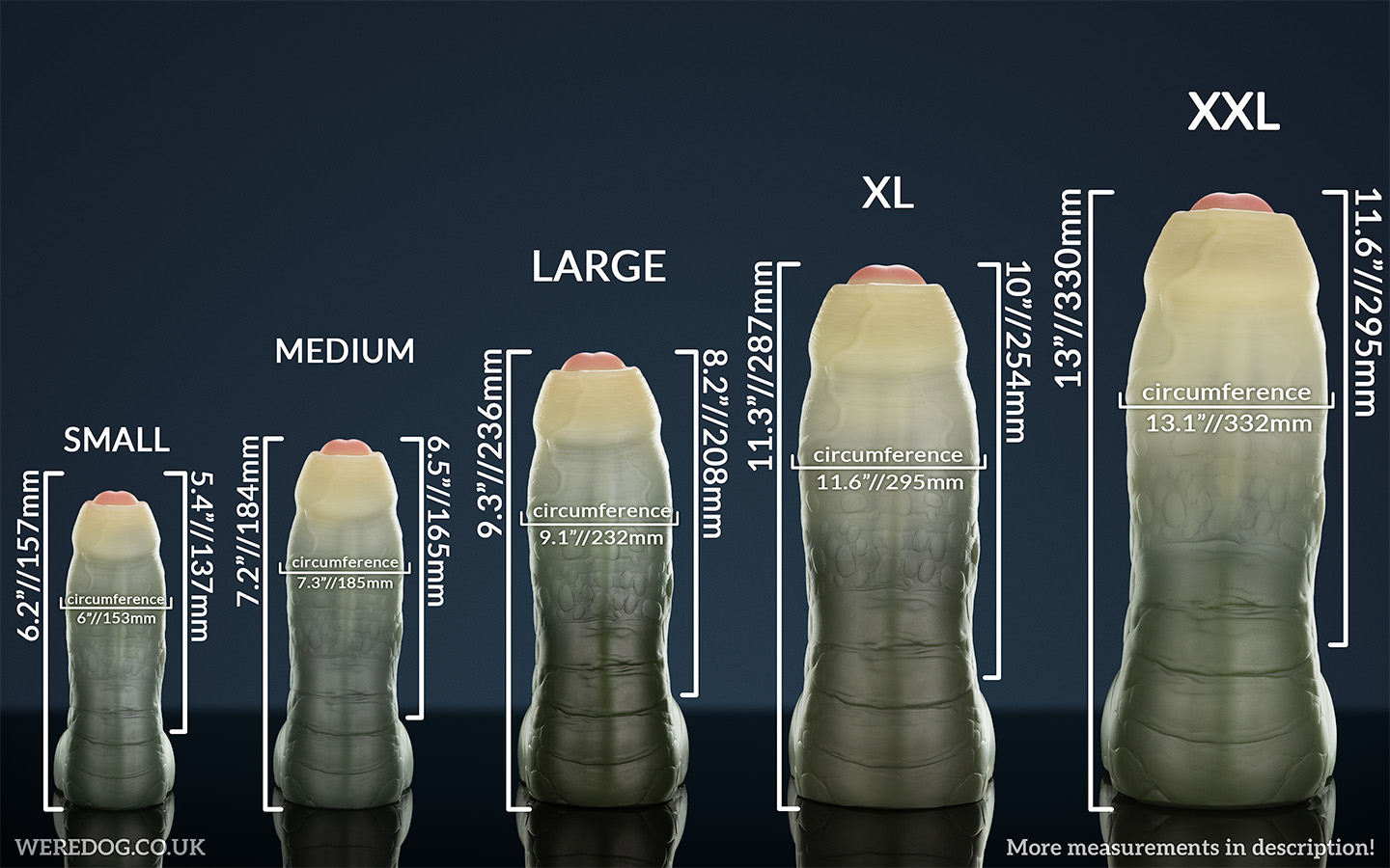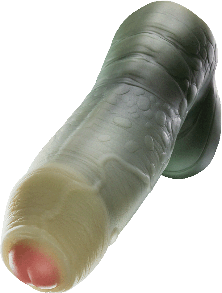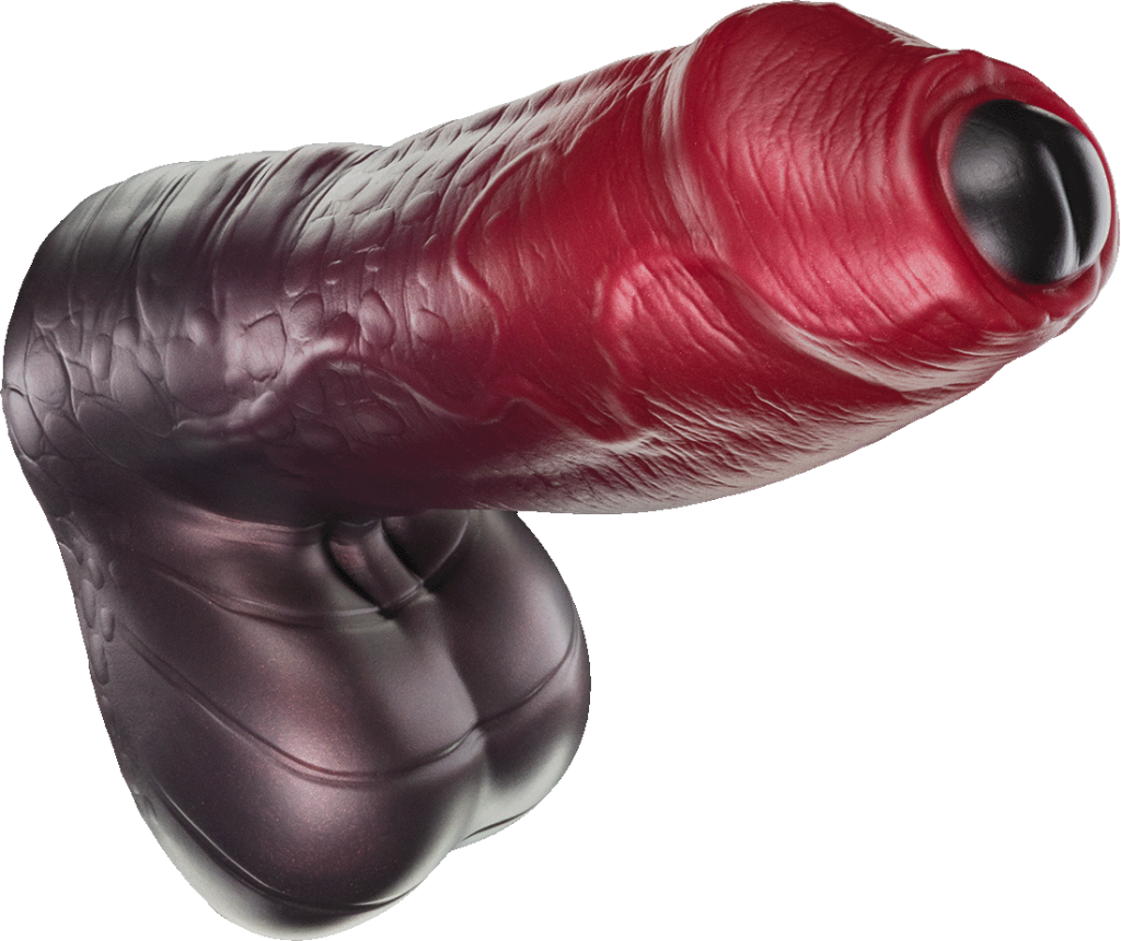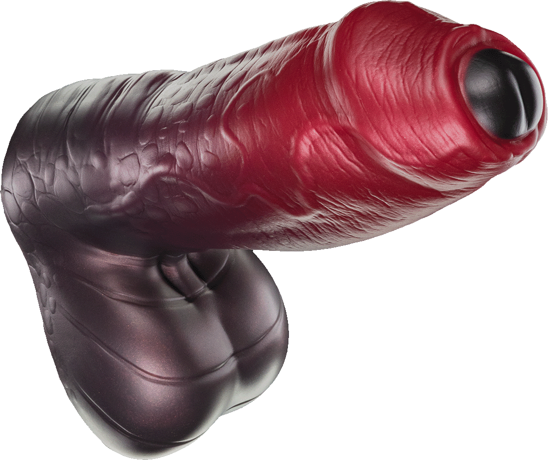 The wrinkles then transition to a scaled texture further down, making him more interesting to explore when hilted; his plated balls make a good place to sit once you’re at the bottom!