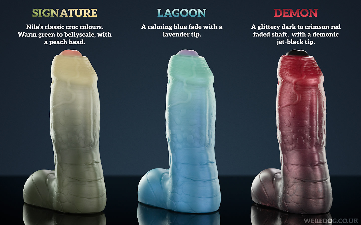 Subtle wrinkles cover the upper two-thirds of Nile’s shaft, making him feel super lifelike.