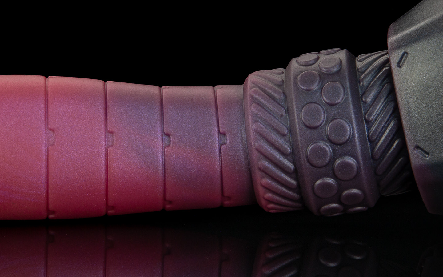 Schlick, schlick, the shaft pulsed harder, subtle, ordered veins glowing bright beneath the polymer surface. Milo’s hand slid lower, experimentally grasping the thicker portion which visibly emulated a knot, and with that Scout’s whole chassis tensed, every actuator suddenly maxed out and twitching, and–