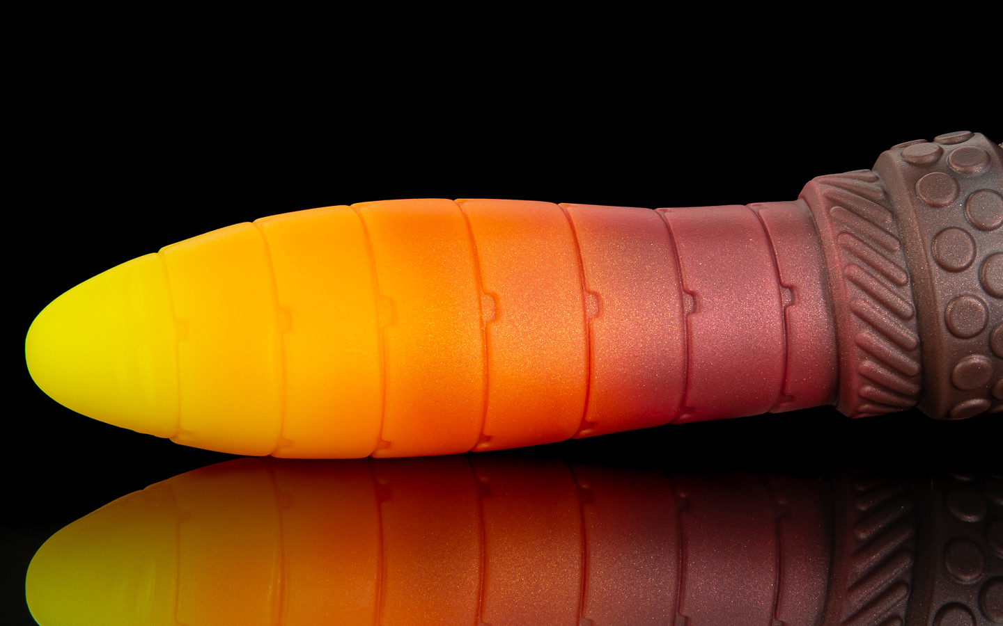The base is a dark steel and red swirl.