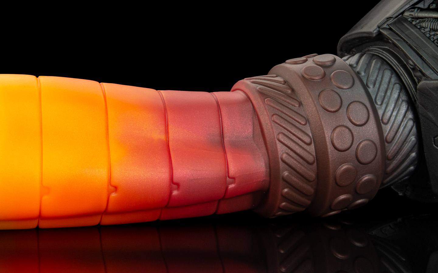 Milo worked methodically; removed the blanking plate from Scout’s ventral port, routed the purpose-built cables - power, data, hydraulic lines. As each connection seated, the shaft responded in stages, first a cyan glow traveling up the length, then internal coils warming it against Milo’s gloved paws. Then, a distinct flex and pulse when the last hydraulic quick-connect snapped home. It was kind of uncanny - despite looking obviously synthetic, it had an organic feel to it. The lynx felt an unexpected heat bloom between his legs.