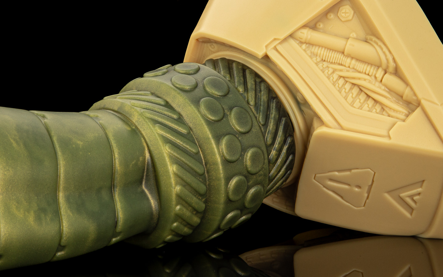 Schlick, schlick, the shaft pulsed harder, subtle, ordered veins glowing bright beneath the polymer surface. Milo’s hand slid lower, experimentally grasping the thicker portion which visibly emulated a knot, and with that Scout’s whole chassis tensed, every actuator suddenly maxed out and twitching, and–
